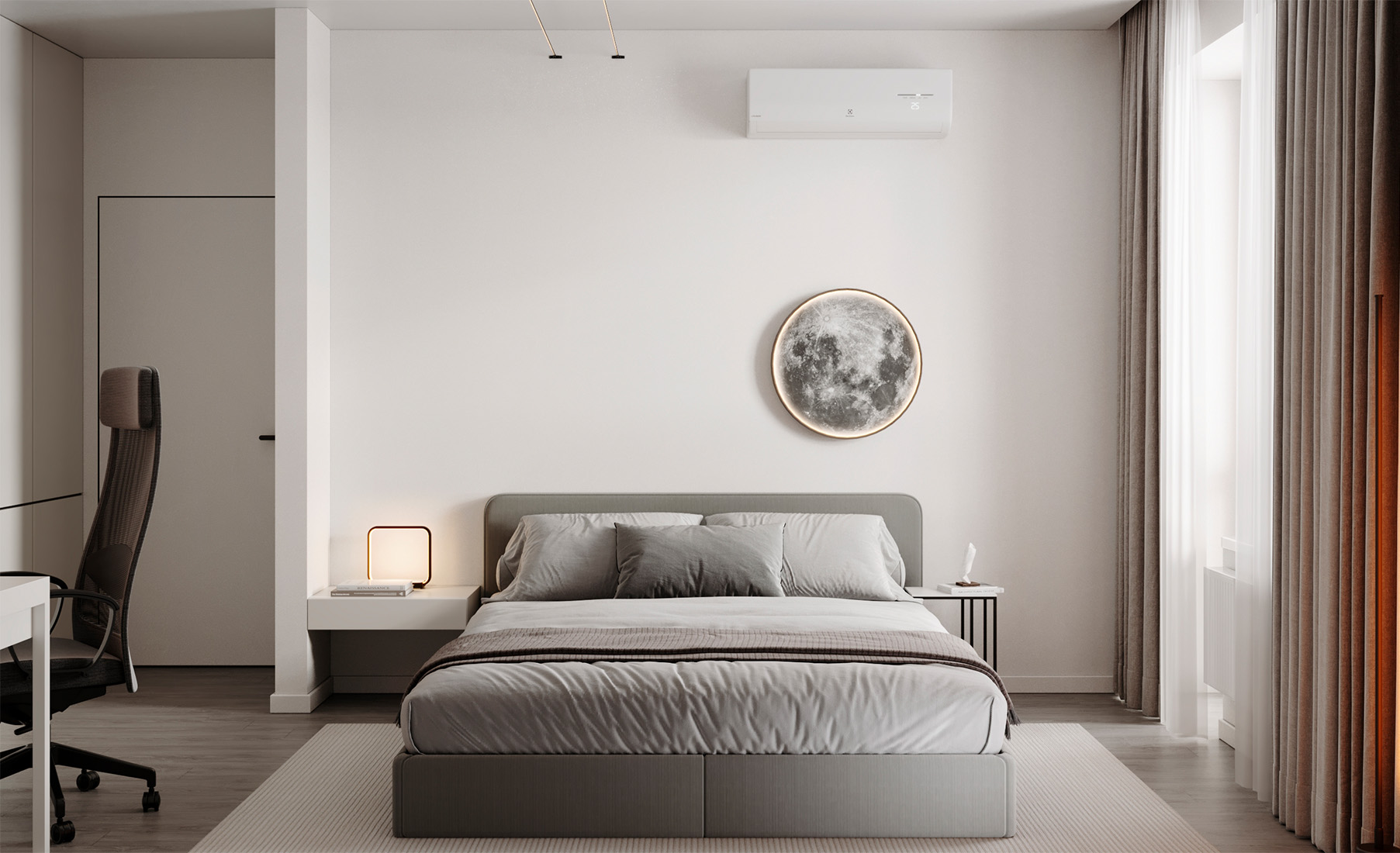 Это один из тех немногих случаев, когда заказчики доверились нам и практически не принимали участие в проекте и не вносили никаких правок. Получился интерьер, полный воздуха, с разными источниками освещения и в монохромной цветовой гамме.